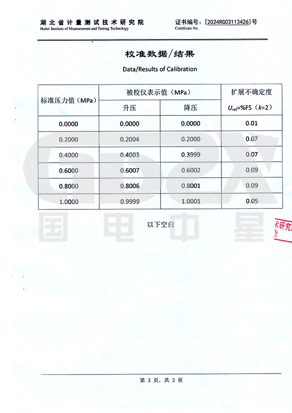 5. 壓力校驗范圍:0~1MPa